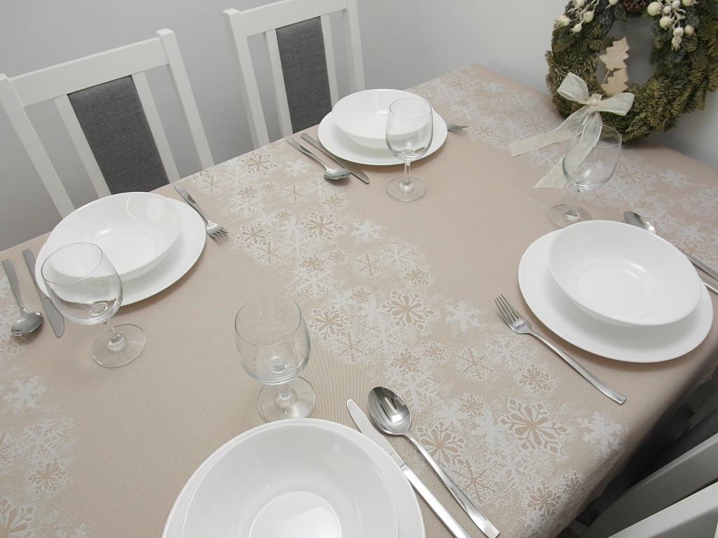 Obrus świąteczny GWIAZDKI beżowe